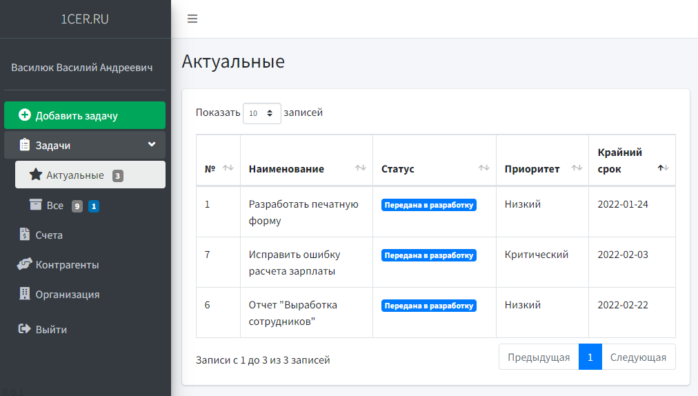 - Аналитика по количеству и стоимости задач в разрезе пользователей и подразделений